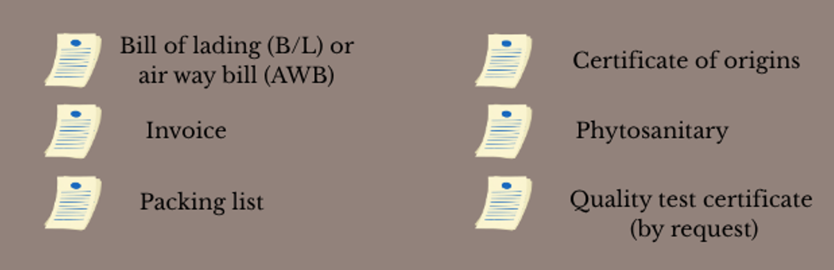 In accordance to our procedures and obligations as sellers, we are obliged to provide the following export documents:
