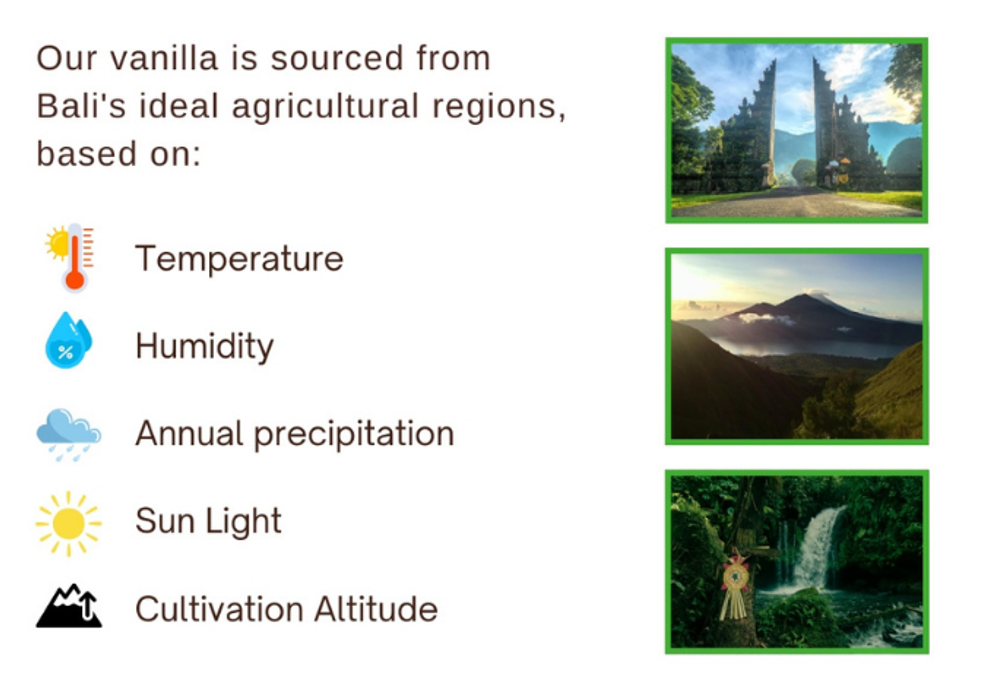 We support the sustainability of vanilla cultivation by local farmers through buying and selling transactions between us and the farmers. This helps strengthen the local farmer economy, which also provides raw materials for our industry.