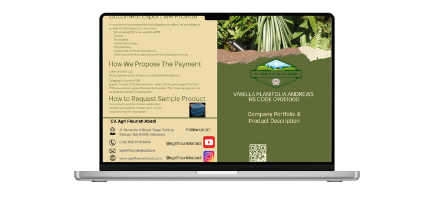 Ratification by the Indonesian Ministry of Law and Human Rights in the form of an official, CV. Agri Flourish Abadi are authorized and registered as a party engaged in trading both exports and imports in the agricultural and plantation businesses by focusing vanilla product.